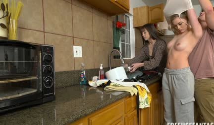 Блондинка ебется раком с парнем под руководством мачехи