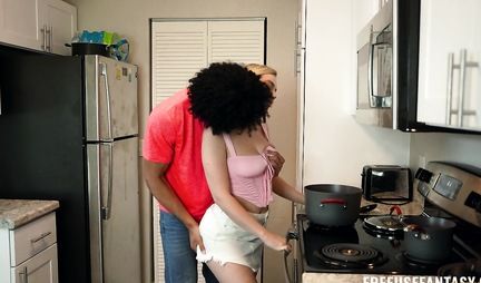 Блондинка с аккуратными сиськами делает отличный минет сводному брату