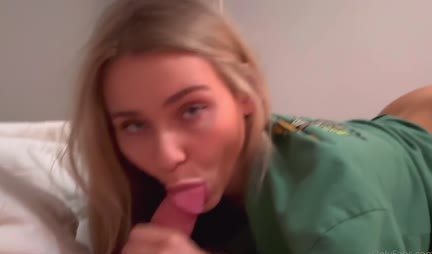Блондинка с натуральными сиськами сосет член с утра
