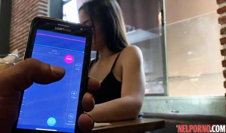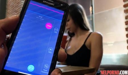 Брюнетка на публике испытала мощный оргазм при помощи мобильного приложения
