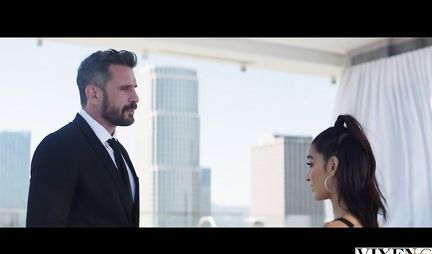 Брюнетка с упругой грудью подставила щелочки для нежного секса с бизнесменом