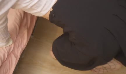 Девица в сетчатых колготках раком встала перед парнем
