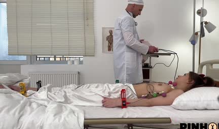 Помните, что сайт HDпорно.ru в первую очередь это образовательный проект, а не всякое, как вы себе думаете. И знаете, что мы будем сегодня делать? Никогда не догадаетесь. Мы будем учиться правильно снимать ЭКГ, кафедра пропедевтики любого медицинского вуза, третий курс. Есть правило КЖЗЧ, каждая женщина злее черта, любой медик знает это правило для порядка наложения электродов, тут не правильно и этого доктора, даже бабкам в районную поликлинику давление измерять нельзя поставить. Красный – правая рука (запястье). Жёлтый – левая рука (запястье).Зелёный – левая нога (лодыжка). Чёрный – правая нога. Запомнили? Вот так правильно. А что творит этот врач? За счет бедной девушки блогера, собирает пожертвования на больницу, вот же любитель шоколада бабаевской фабрики. А потом еще пациентку трахает в жопу! Ужас, хотя бабке в четвертой палате вчера так давление сбил с двухсот до нормы. Не болейте.