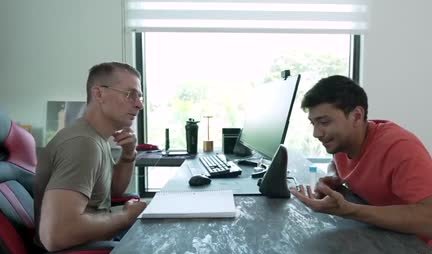 Когда товарищ пришел к своему другу по колледжу в гости, то прямо на пороге увидел мачеху с полуобнаженной грудью. Искренне желая трахнуть ее, он клеится к милфе как банный лист к мужской жопе, но в итоге сначала обламывается, а после все таки получает от мамки друга минет и секс местами даже в жопу. Вне себя от возбуждения, кентуха доходит до друга и узнает что тот сделал вот такую себе мачеху. После этого он вызывает мачеху в кабинет и гость делает с милфой все что только захочет. Эх, нам бы такую мачеху... Ну или хотя бы такого друга.