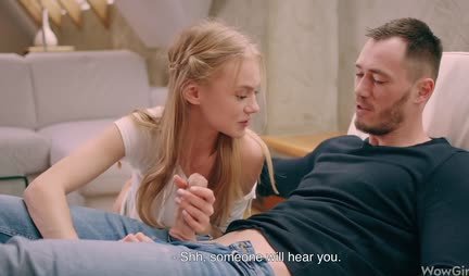 Худая русская блондинка мокрой киской оседлала ствол ухажера