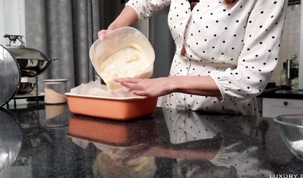 Кулинарная блогерша с большими дойками решила попробовать член
