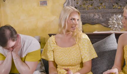 Мамка блондинка помогла молодой парочке испытать оргазм