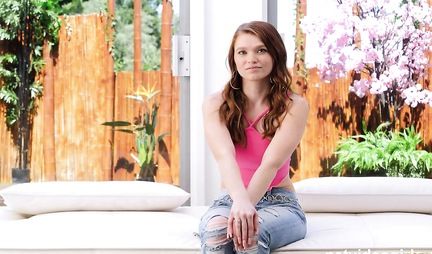 Молодая рыжая девушка с аккуратными сиськами пришла на кастинг