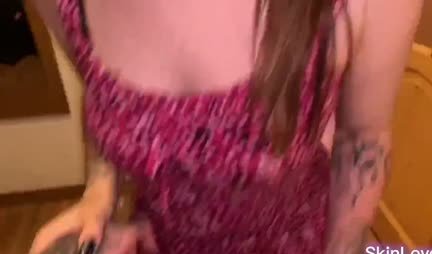 Парень приходит домой в 00:24 и узнает у любимой жены, что та ничего не приготовила покушать. В холодильнике пусто как в антарктической пустыне. Зато у девушки новое платье и она сама не прочь подвергнуться наказанию за допущенный косяк. Мало того, Скин Ловерс в 01:11 сама опускается на колени и берет пенис мужа в рот - потому что сосать член легче чем готовить да и приятнее в разы. Возбудив товарища она встает на четвереньки на софу и в полной мере получает удовольствие от фрикций. Секс на спине тоже имеет место быть и только после него девушка принимает на язык кончу.
