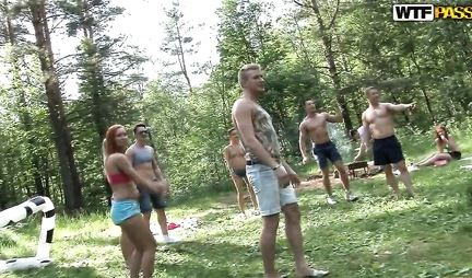 На природе возбужденные девушки раздвигают ноги и впускают русские члены парней
