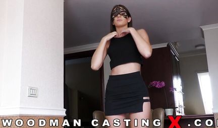 Очаровательная брюнетка пробует секс втроем во время кастинга