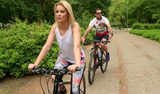 Настоящий мачо не будет унижаться до катания на велосипеде. Вот потому очень милая с виду дамочка катается на велике с одним, а вот занимается сексом после велопоездки с абсолютно другим и и ничего в итоге не теряет, потому что новый хахаль знает что нужно девушке и это явно не велосипедное седло между ног, а кое что потверже и покрепче.