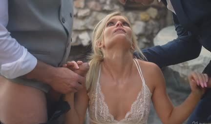 Помните веселую песенку с такими словами: поделись подружкою своей и она к тебе не раз еще вернется?!... Ну так нечто подобное происходит у David Perry и его симпатичной супруги Candee Licious. Пара всего лишь позавчера обвенчалась, а сегодня прибыла в швейцарский горный отель для медового месяца. Для начала супруга сосет мужу член на новом месте, а после ищет еще кого-нибудь для полноты ощущений. Подобной участи удостаивается местный швейцар, который как раз ошивается без дела. В итоге два мужика жарят невесту в групповом порно с двойным проникновением и, судя по всему, это только начало!