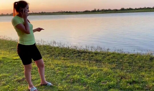 Русская баба подцепила мужика на рыбалке и сделала ему минет