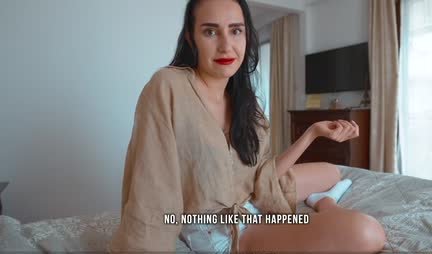 Заехав с пасынком в номер с одной кроватью, мачеха поднимает кипиш и в результате они переезжают в гораздо более внушительную халабуду, чем намедни. Но и здесь все та же одна кровать. В итоге паренек присовывает вафлю между булок спящей мамашке и трахает ее, пока не сливает сперму на аппетитные дырочки.