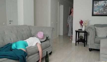 Когда у русской девахи начинаются проблемы с мужем и многочисленными любовниками, к ней в гости на пару дней приезжает сестра, которая учит ложить на все болт и жить в свое удовольствие. Сама она именно так и делает: бухает всю ночь, а наутро трахается с пасынком сеструхи во все дырки, отлично зная что тот тоже сестрин любовник. Ошибка в том, что пара не предохранилась на случай внезапного возвращения сеструхи, а так нельзя!