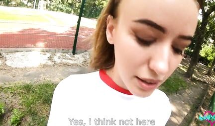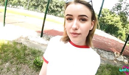 Русская девушка в коротких шортиках готова для секса на публике на камеру