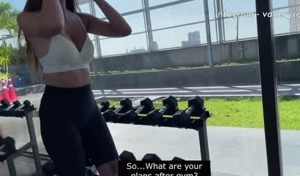 Заниматься фитнесом на качалке очень полезно, но до безобразия скучно. Но когда сегодня там появляется Валери Рэй все в корне меняется. Так, один из завсегдатаев этого заведения, предлагает девушке помощь с белком, а для этого пара идет в туалет и сношается после легкого минета. Вот такие бескорыстные парни иногда встречаются на качалке.