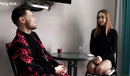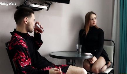 Русская телочка в чулках ебется с парнем, думая, что он продюсер