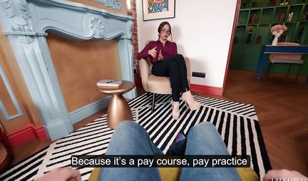Деньги не пахнут, а потому Лакшери Герл ничуть не стесняется работать репетиторшей английского языка. И сегодня красавица учит русскому языку зарубежного мажора, который хочет научиться клеить русских телочек. Ну так чтобы тот быстрее вживался в образ, Лакшери сама играет роль симпатичной девицы, которая вполне готова жестко перепихнуться. Ну вот такова непростая работа репетиторши.