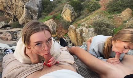 Русские телочки сосут крепкие члены парням на природе