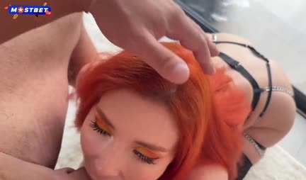 Рыжеволосая русская сучка в чулочках встала раком ради кайфа