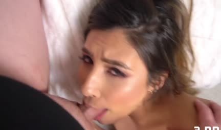 Симпатичная брюнетка делает минет и целует ноги своему ухажеру