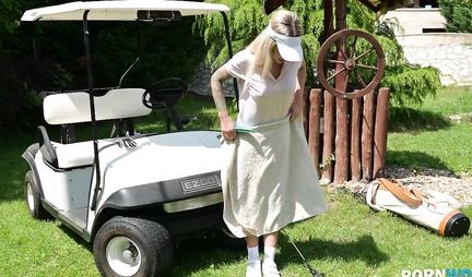 Может быть среди посетителей сайта HDпорно.ru есть любители гольфа и нам расскажут в комментариях, что такого в этом виде спорта. Судя по данному ролику, гольф крайне травмоопасный вид спорта - после него у девушки студентки болит жопа и она чувствует в ней посторонний предмет и спасибо, что это не клюшка. Короче, инструктор по гольфу перепутал лунки и загнал свою клюшку по самые шары в черную лунку.