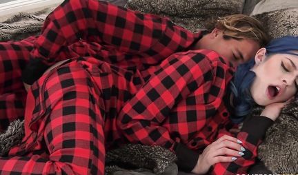 Само собой же от кофе в постель не откажется ни одно лицо женского пола, а уж тем более эта красотка с синими волосами. Но глупо надеяться на невозможное, потому друг вместо завтрака, засаживает весьма габаритный половой прибор в весьма сочную манду спящей крошке. Ну уж лучше так чем вообще ничего и девушка безусловно права в подобном выборе - ведь не в рот же суют!