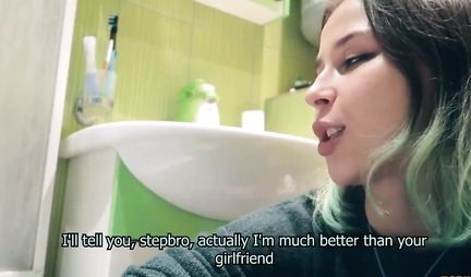 Бывает такое что парни в ванне не только моются, но и дрочат письку. Вот как раз в такой момент к чуваку завалилась сводная сестра, заявляющая что ей скучно и предлагающая побаловаться сексом. Конечно для товарища это неожиданность, но если девушка уже овладела членом и засунула его в рот - не лишать же милашку удовольствия. А когда он спускает сперму на лицо сеструхи, то не хочет лишать удовольствия себя.