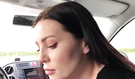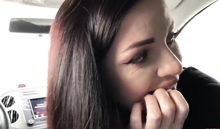 Темноволосая девушка в машине открыла ротик и порадовала член глубоким минетом