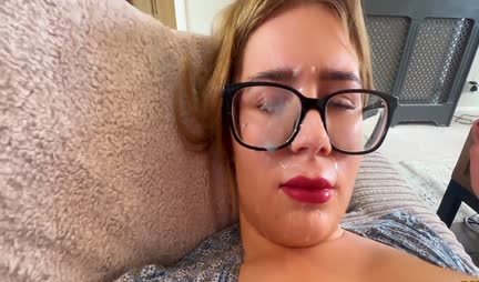 Толстушка с большими дойками получила камшот на очки